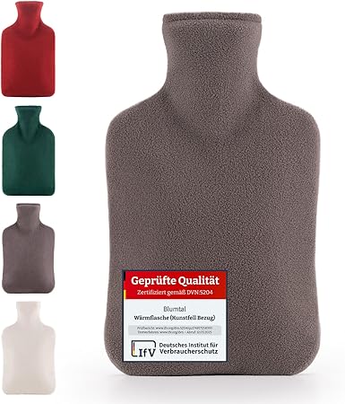 Die Blumtal Wärmflasche ist unser klarer Preis-Leistungs-Sieger und bietet eine erschwingliche Möglichkeit, auf langlebige Wärmflaschen aus schadstofffreiem Material umzusteigen. Der Korpus besteht aus Naturkautschuk und erfüllt den strengen britischen Sicherheitsstandard BS1970:12. Durch das zusätzliche Innenfutter wird die Hitze ideal verteilt und die Wärme besonders langanhaltend gespeichert – perfekt, um Heizkosten zu sparen. Das großzügige 1,5-Liter-Volumen und der samtweiche Bezug sorgen für entspannende und kuschelige Momente.
