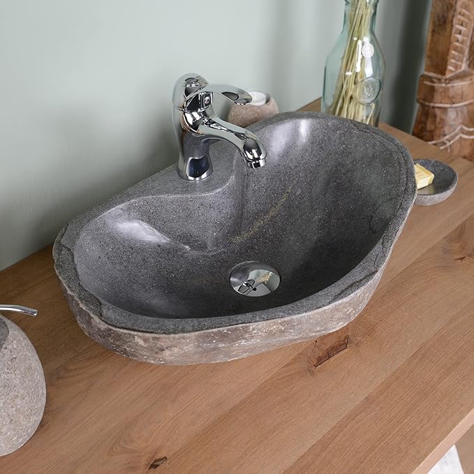 Der Unikat-König aus Flussstein: WOHNFREUDEN Natursteinbecken – Das Herzstück für nachhaltige Aufsatzwaschbecken Liebhaber