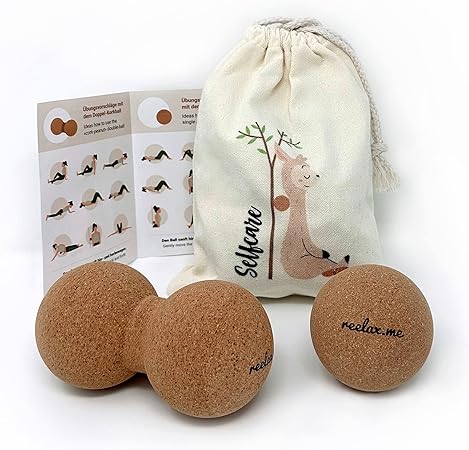 Das Faszien-Set von reelax.me ist die ideale Ergänzung zur Rolle und löst das Problem der gezielten Massage am Rücken und Nacken. Das Set besteht aus einem Duoball (Doppelball) und einem Faszienball, beide aus 100% Presskork. Dies garantiert, dass die Massagegeräte plastikfrei und natürlich antibakteriell sind.