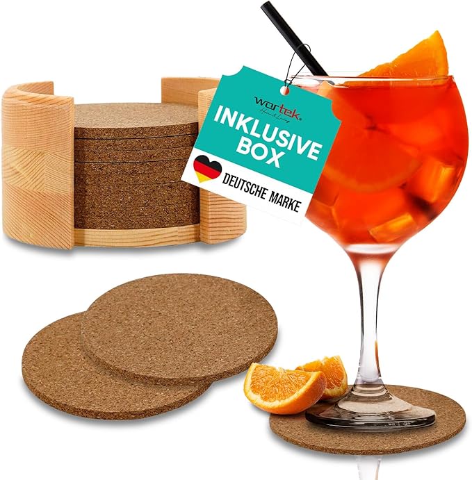 Der Naturmaterial-Champion: wortek Korkuntersetzer – Langlebiger Kork im Set mit Holz-Box