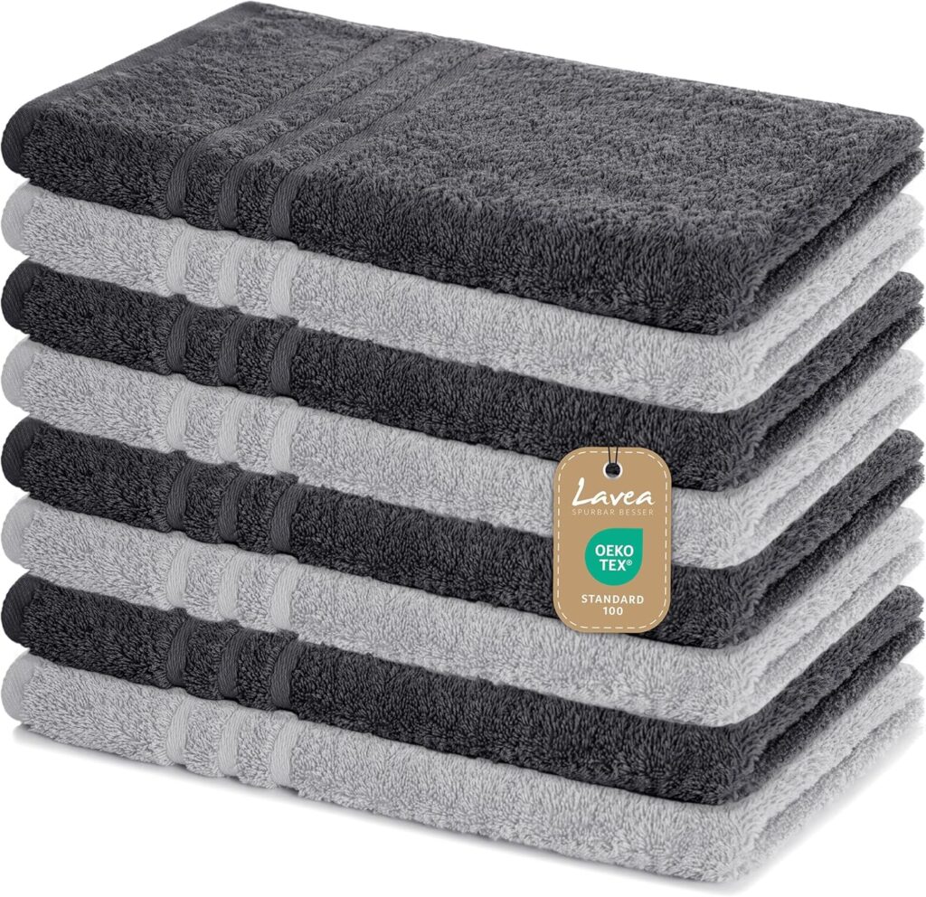 - Lavea 8er Handtücher Set: Praktisches Set für Familien, Gäste oder Vielnutzer – bequem, langlebig und nachhaltig.