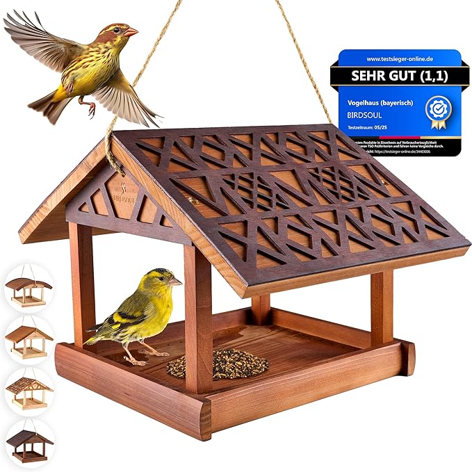 | BIRDSOUL | Tannenholz / Wachs | Klassisches Haus / Drainage | „Rain Safe“-Bodenplatte (verhindert nasses Futter) |