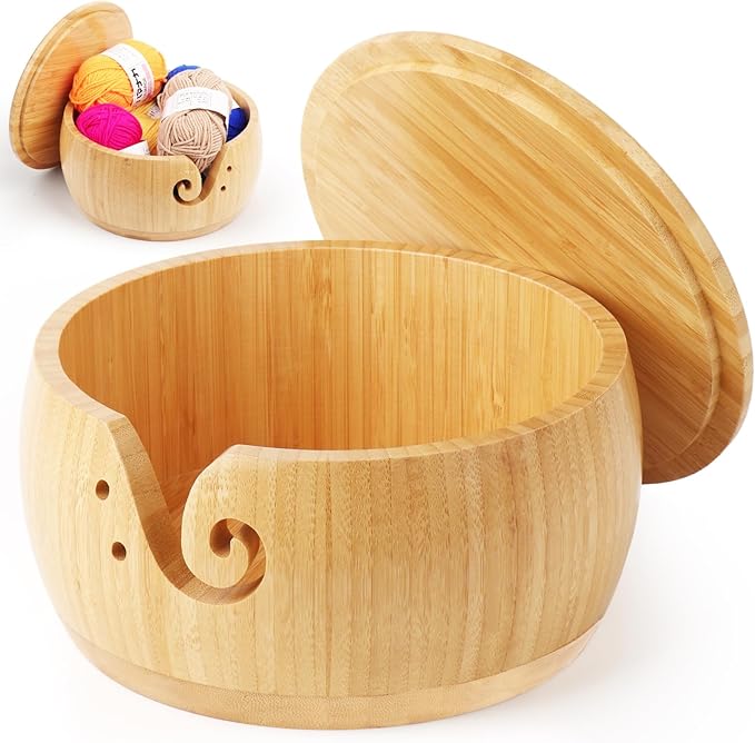 Diese Garnschale von Coopay ist das unverzichtbare Utensil für alle, die eine geordnete und störungsfreie Strickzeit suchen. Die extra große Schale besteht aus robustem Bambus und ist glatt geschliffen und lackiert, um die Wolle vor dem Reißen zu schützen. Der sichere, staubdichte Deckel verfügt über spezielle Austrittslöcher, durch die das Garn entnommen wird, was das Wegrollen und Verheddern der Knäuel verhindert. Diese Nachhaltige Wolle-Garnschüssel ist langlebig, bricht nicht leicht wie Keramik und ist dank ihres relativ großen Sockels sehr stabil. Sie dient nicht nur als Halter, sondern auch als ästhetische Dekoration zur Aufbewahrung.
